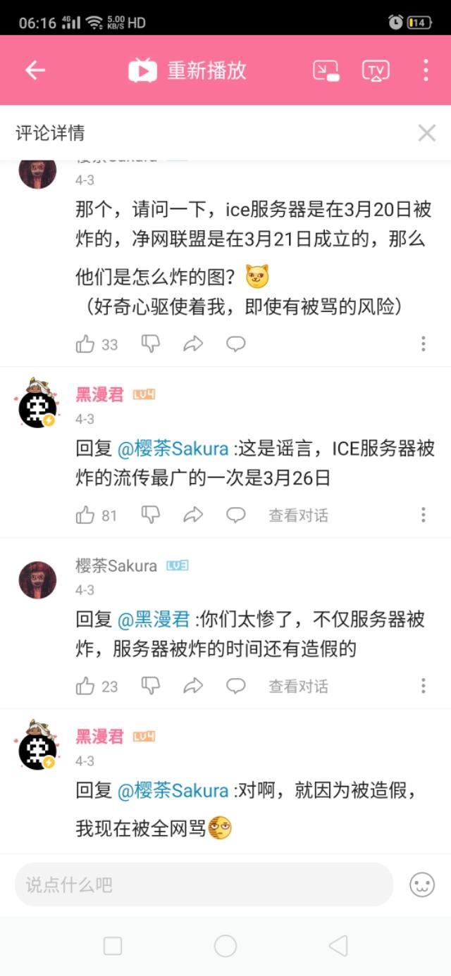 并且在自己的评论区给你们问题的答复,也就是ICE服务器被炸事件