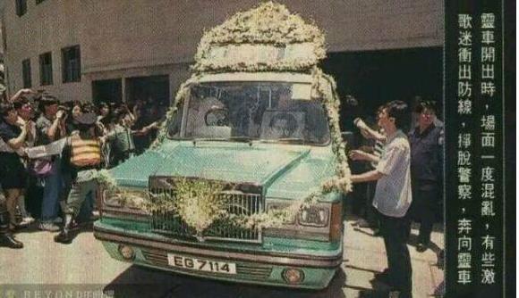 工作人员将白布遮挡,防止粉丝拍下黄家驹遗容。