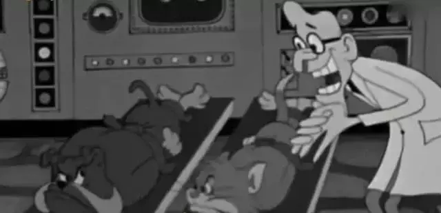 这一集堪称是猫和老鼠最恐怖的一集。开始这一集出现的是杰瑞和一个奇怪的博士在研究一些奇怪的化学试剂,大家从外面那些猫的眼神中,看得出这个化学试剂可能是针对他们的。这个化学试剂最后研究出来了,它的作用可以说很变态了,可以将动物们的性格转向,举个例子,原本猫捉老鼠,现在变成猫怕老鼠,猫害怕狗,变成狗怕猫。这可能就是失传已久的灵魂互换,只不过记忆没有变。但被当时的汤姆亲眼所见,这种情况是他不愿意看到的。原本是你死我活的猫叔居然开始合作起来。