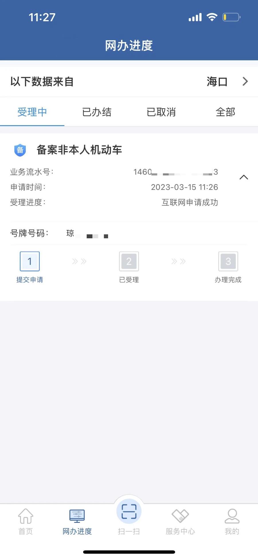 备案申请提交后,网办中心工作人员将在一个工作日内对备案信息审核确认,审核通过后,系统会将审核结果通过短信或“交管12123”APP消息发送给备案用户和车主。
