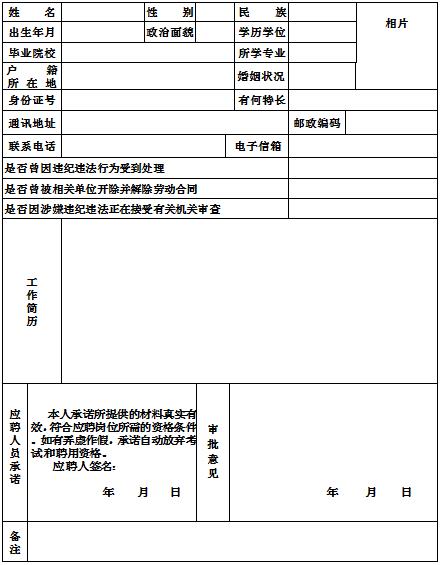 说明:报名人员必须如实填写上述内容,如填报虚假信息者,取消聘用资格。