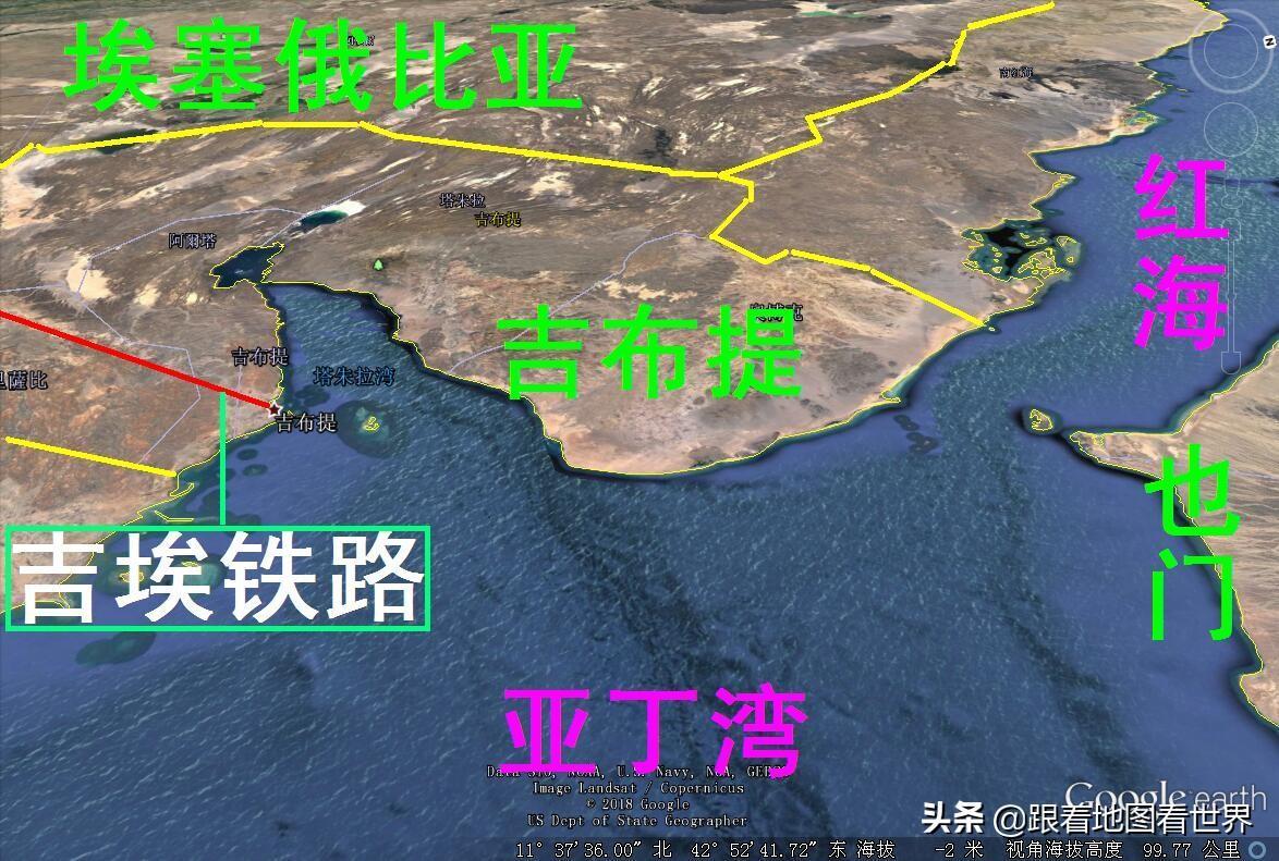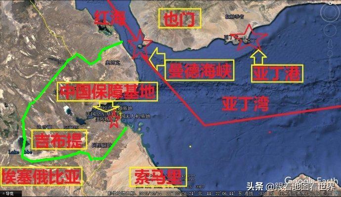 面对曼德海峡,地处欧、亚、非三大洲的交通要冲,靠近国际重要航海线,地理位置优越。