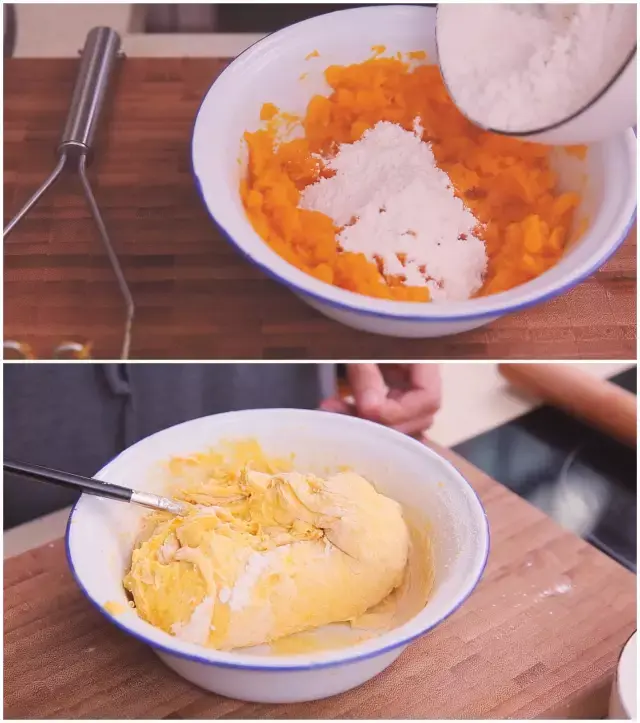 取熟透的南瓜,去皮去籽去筋,然后切成薄片,隔水用大火蒸熟。