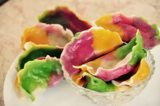 颜色缤纷的饺子为节日增添了不少欢乐气氛呢,大人小孩都喜欢~