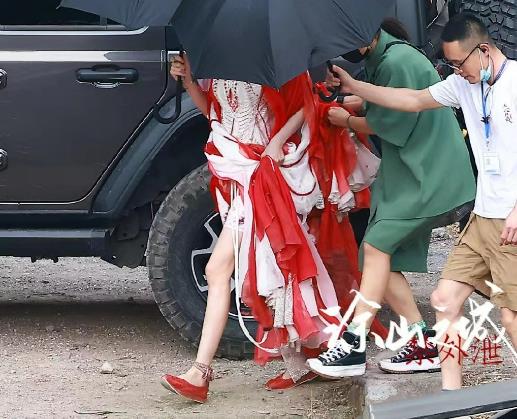 在这张不露脸的路透图中,杨幂身穿戏服,行走之间红裙飞舞,一双长腿格外惹眼。皮肤白皙有光泽,完全看不到肌肉线条,俨然就是标准的漫画腿。只是剧版戏服大都为长款,估计大家能在剧中看到美腿的场面不多。