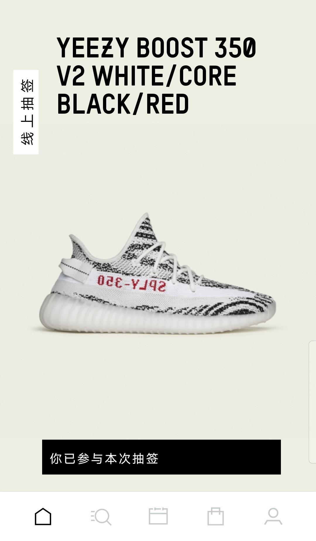 在阿迪达斯官方APP上抽签购买。打开APP,大家就可以在首页看到白斑马的参与抽签页面了。根据引导参与抽签即可。