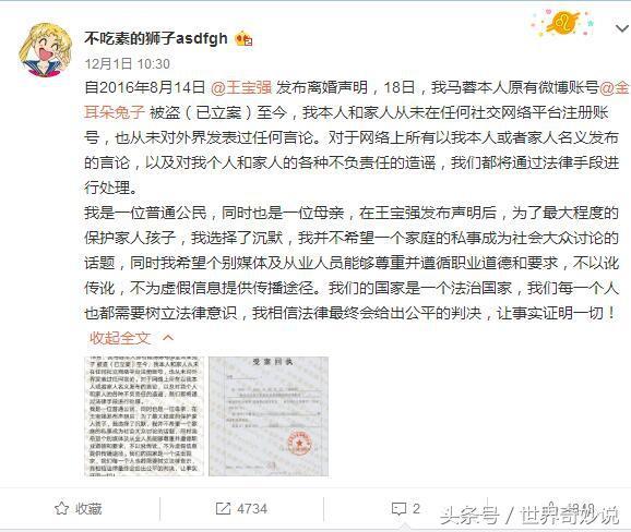 在这条微博里,我们看到马蓉除了说明自己的“委屈”之外,还公布了新的微博号“不吃素的狮子asdfgh”,单单从微博号来看,似乎充满了“战斗力”,这是还要接着作妖,跟可怜的宝强“一较高下”的意思吗?在“不吃素的狮子asdfgh”也发表了类似“哭诉冤屈”的说明: