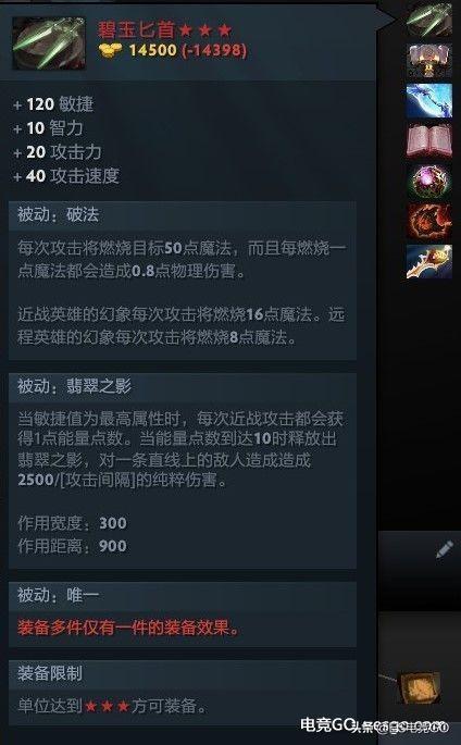 敏捷英雄走物理系的神装,代表英雄:小黑,luna,美杜莎,幻影刺客,小骷髅,齐天大圣。黑鸟不建议出,收益略低。装备碧玉匕首的英雄,建议吃一个银月再带一个银月,能够让翡翠之影的输出最大化。