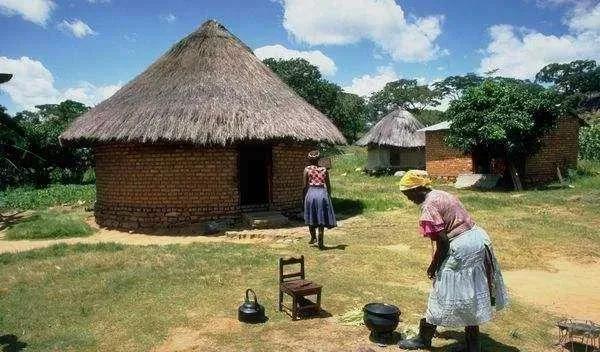 下车后,就看到两间破烂的茅草屋,门口还站着两个黑人妇女,旁边还牵着三个黑人小孩。