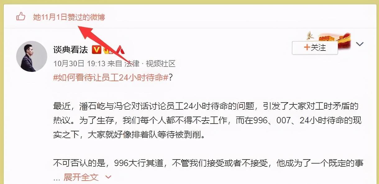 而她还在11月的1号点赞了一条微博,是关于员工24小时待命的话题,所以,这也看得出来柳岩还是经常玩微博的,可为何大鹏和柳岩如今形同陌路了呢?这一切都不好啊!