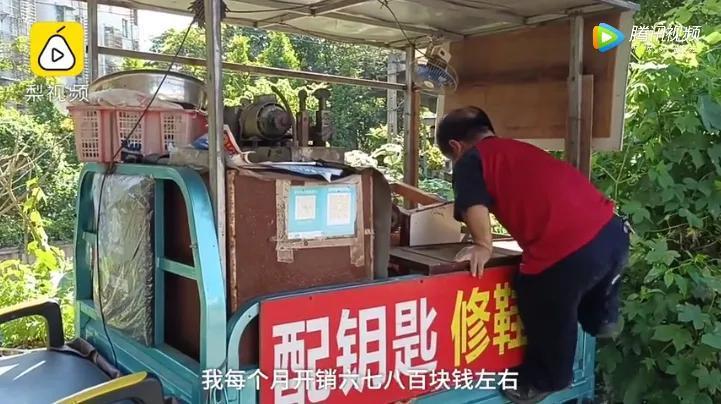 为了供女儿上学,陈建华退掉了他租来修鞋的店面,用一辆三轮车改造成一个流动的小鞋摊车,就为了省下一年一万多的租金。