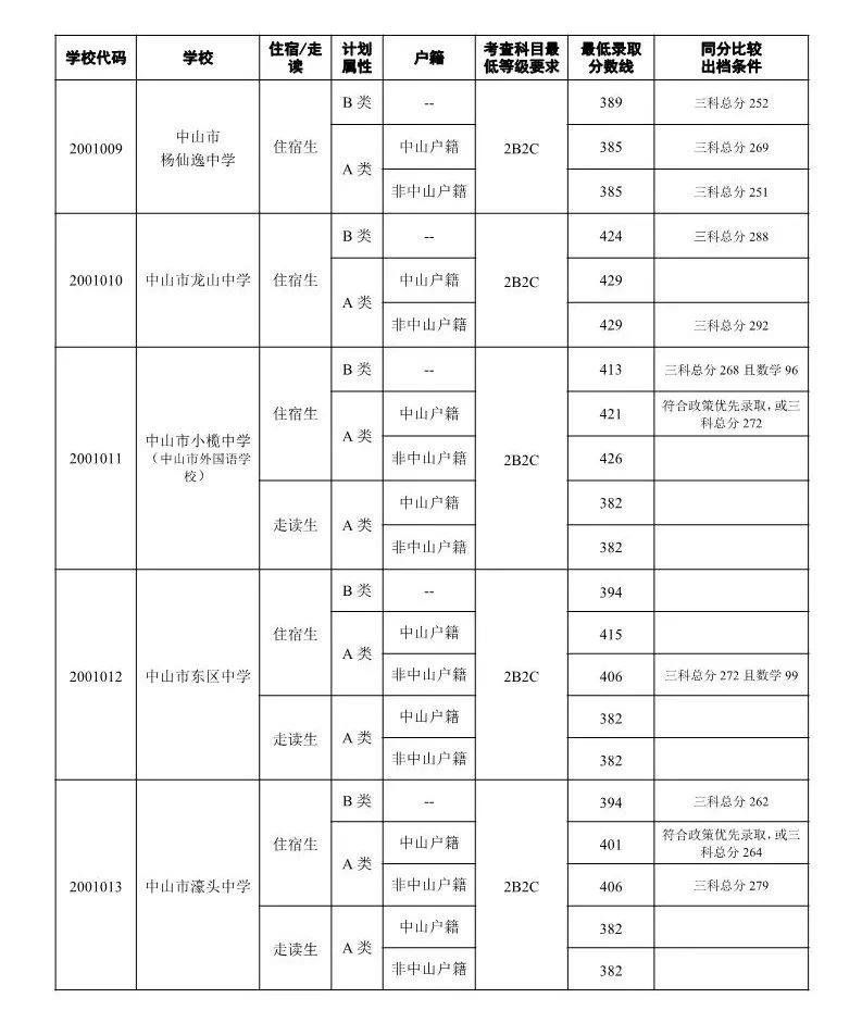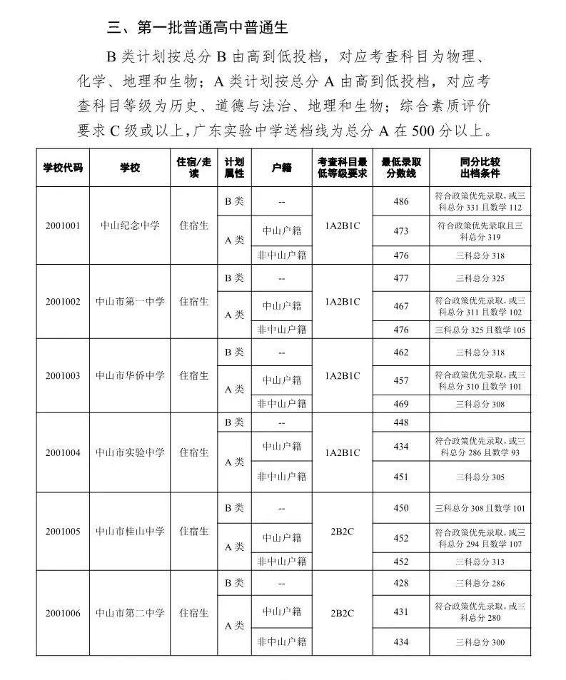南都讯 记者侯玉晓就在刚刚,中山市2019年普通高中学校录取分数线公布。其中,第一批普通高中普通生,中山纪念中学B类最低录取分数线486分,A类中山户籍最低录取分数线473分,非中山户籍476分。中山市第一中学B类最低录取分数线477分,A类中山户籍最低录取分数线467分,非中山户籍476分。