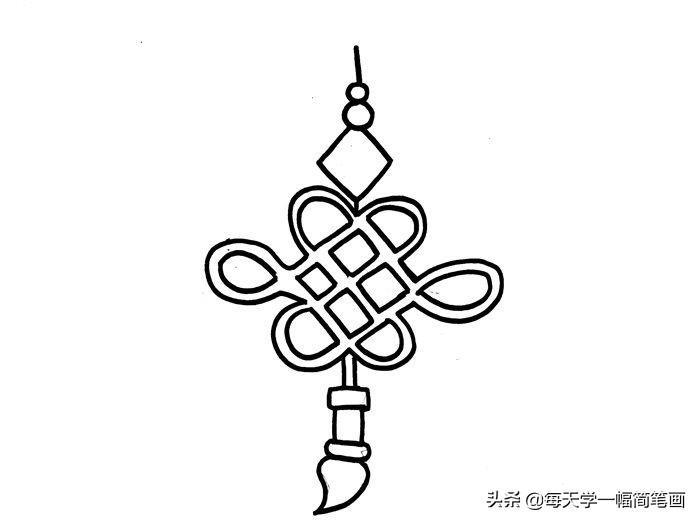3、在中国结的下方再画上流苏装饰,一个完整的中国结就画出来了。
