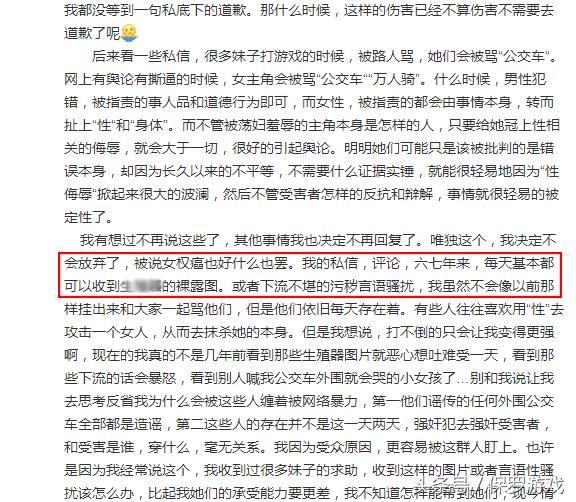 UU在此微博中说出了非常大胆的一句话:任何女性不应该因为有过丰富的性经验就被成为公交车!话糙理不糙!UU也爆料称,今年来总是被陌生人骚扰,还发出了许多图片。(图片过于震撼,暂不上传)