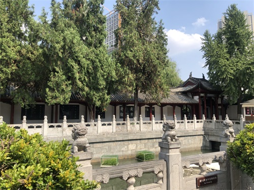往里面走会看到放生池,我们都喜欢叫它许愿池。池宽15.6米,长25米,由64根石柱和64块石刻板组成楼栏杆,每根石柱上雕刻一尊石狮。以前这里有很多鱼,现在池内有很多乌龟在自由泳。池内四角有“阿耨达池”四字,每个字有近一米见方。池中南北各置喷水莲花:热时,为水族喷水供凉;冷时,让水族栖息莲花瓣上晒太阳。