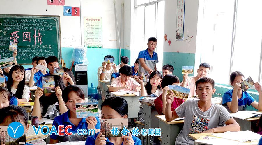 那个站在远处的年轻女士是小V(VOA英语城)的班主任。