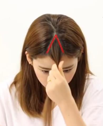 先在刘海处划分一个三角区,一般是以两个眼珠相等的位置。