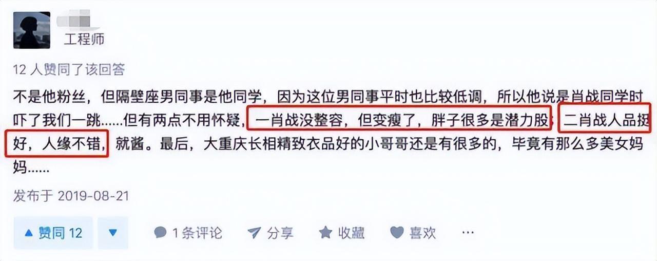 除了肉眼可见的变瘦之外,他的校友也是纷纷发表声明,肖战没有整容,他就是长这个样子,而且有网友也晒出了证据。
