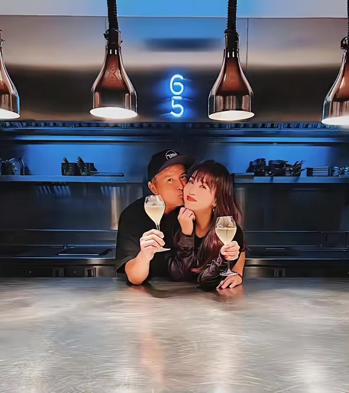 “小龙女”范文芳与老公聚餐,搂腰接吻姿势亲密,一瓶香槟近万元