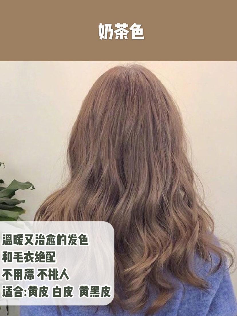 奶茶色温柔又有点治愈的色系,显白又百搭的发色。不挑人,黄皮肤轻松驾驭。搭配卷度,很有时尚线条感,特别的时髦哦。