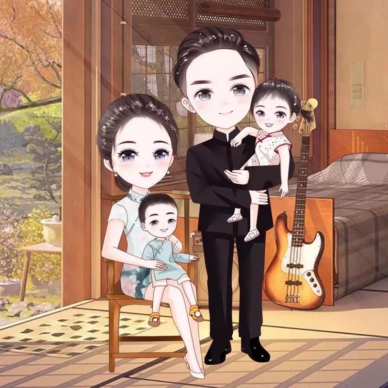 最近收获了不少全家福微信头像,很多家人都在用全家福制作成自己独有的手绘画全家福,一家人满满的爱
