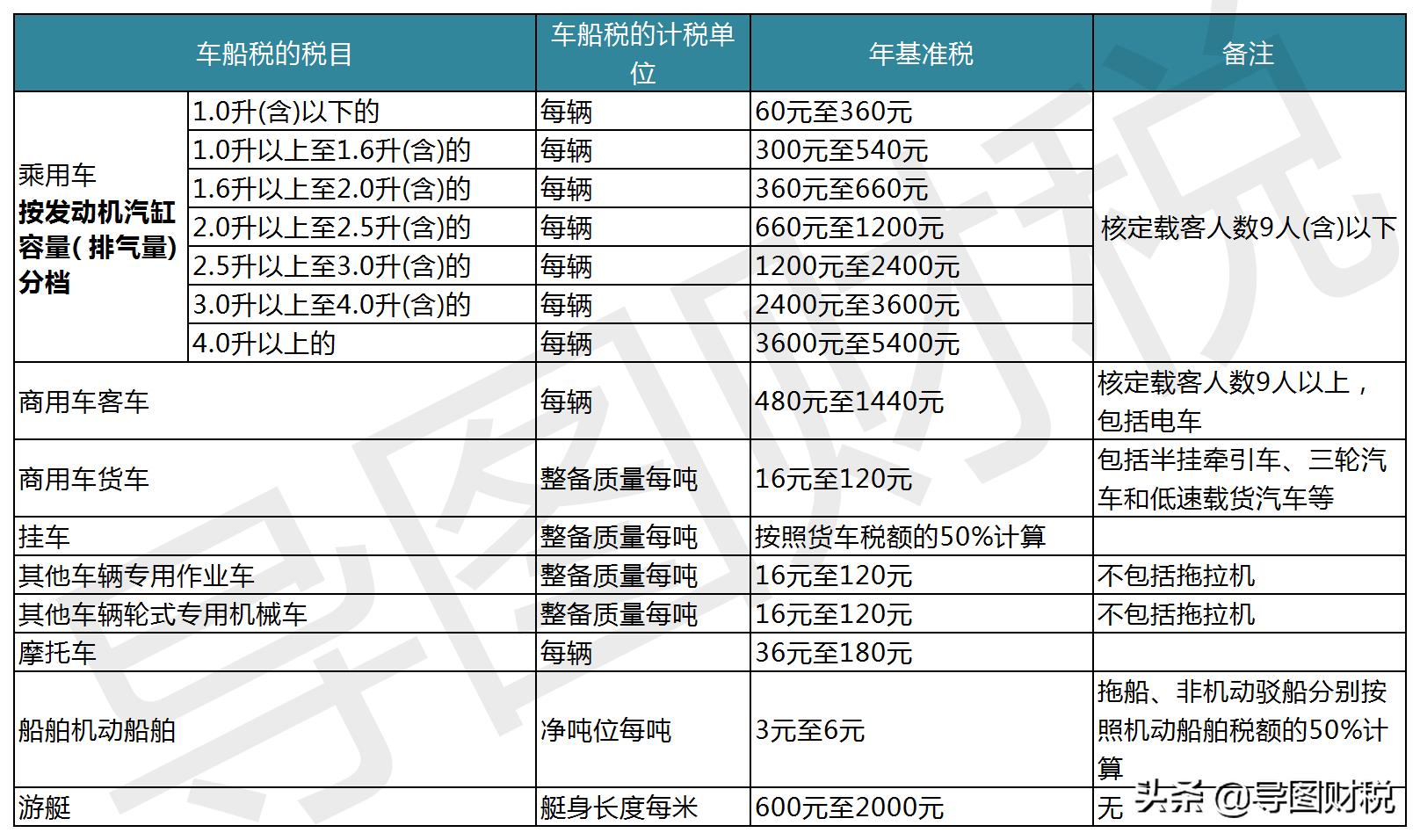注:1.车辆具体适用税率,由省、自治区、直辖市人民政府依据车船税法所附《车船税税目税额表》规定的税额幅度和国务院的规定确定。
