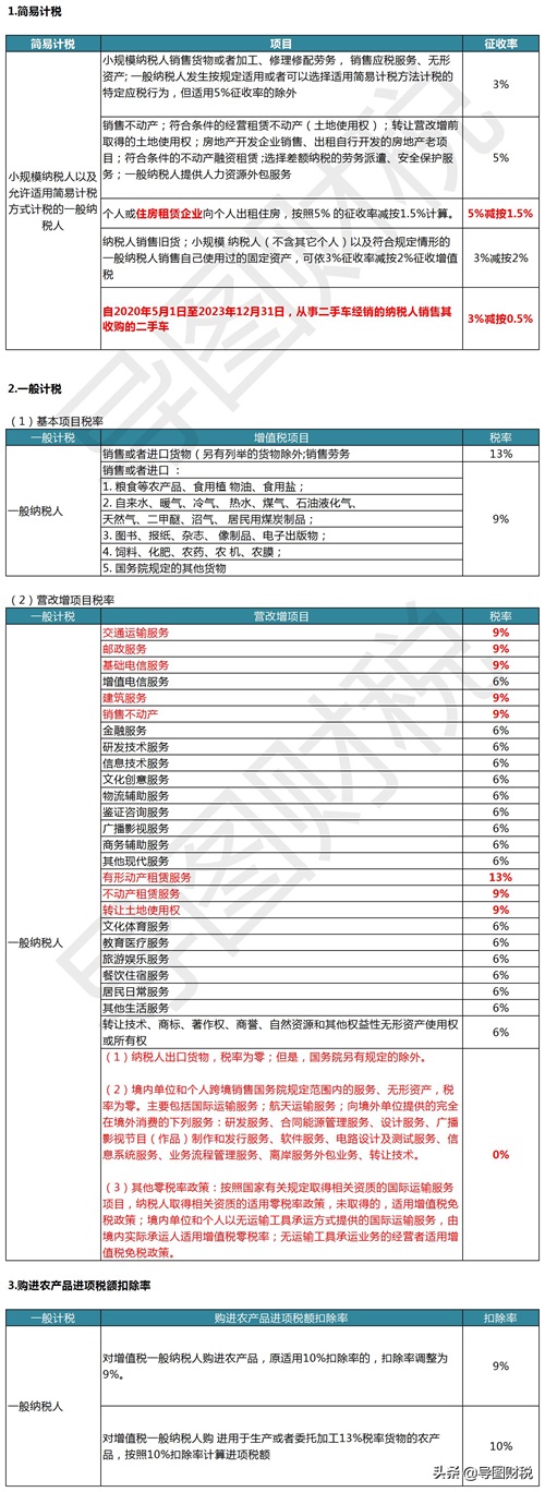 本期导图财税整理了现行全部税种税率,以供大家工作查阅参考: