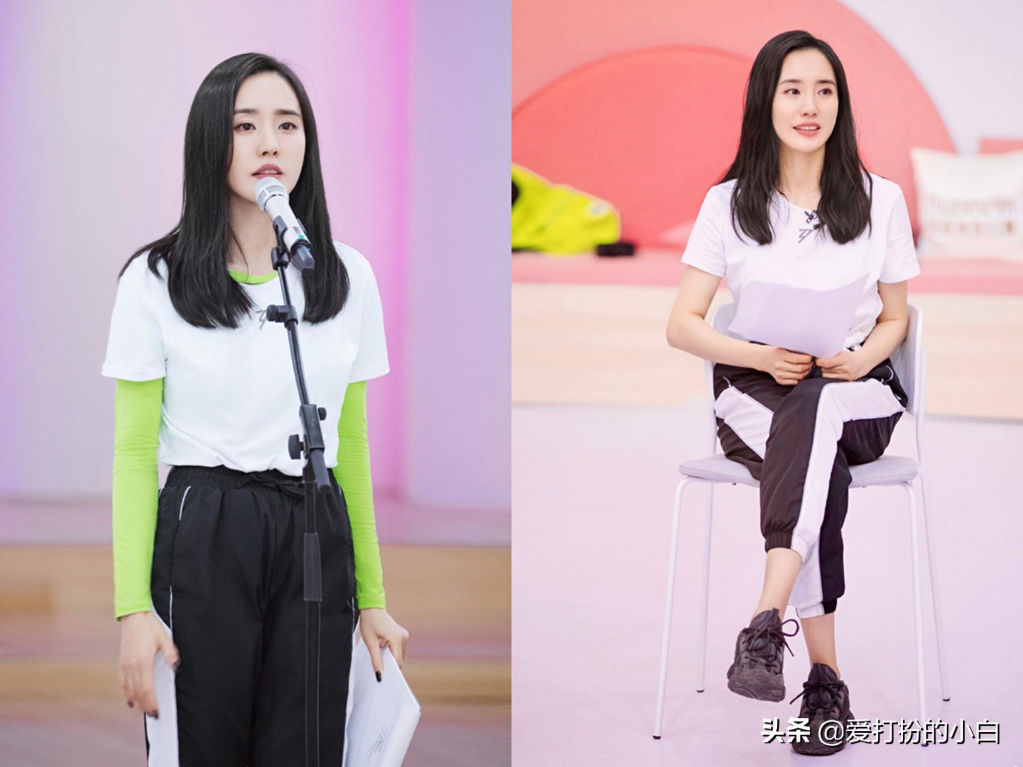 而且我发现了,30+的姐姐们驾驭起这些运动服装也是完全没有压力,可能和他们的形体有很大关系,即使穿的是休闲T恤,王智的体型也是笔直的,看她的坐姿就很挺拔,站姿也是如此,而且觉得节目组很会搭配,这个白色运动T恤搭配一件颜色鲜艳的内搭衫,效果真的是很好看,时尚许多!