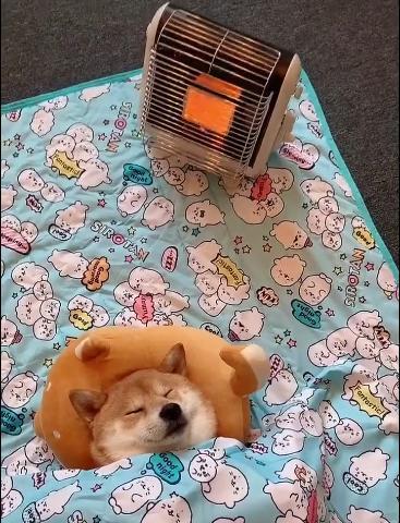 一只狗子“盖棉被吹暖风”,在“冻成狗”的冬天,这场景让人羡慕