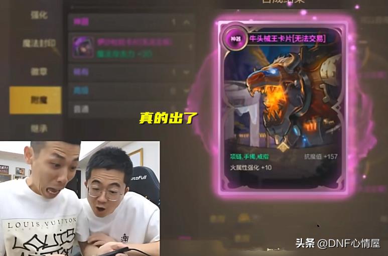 当然,旭旭宝宝最想要的,则是“牛头械王卡片”,能赋予首饰“火属性强化+10”属性,在手游里面,对走火强的职业来说,这属于毕业附魔卡。
