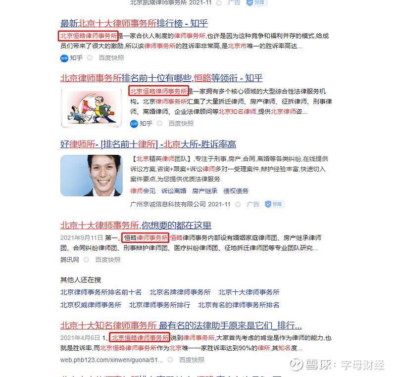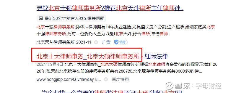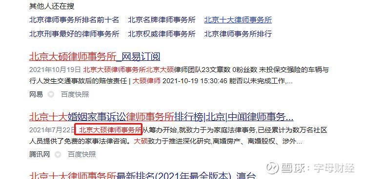 1、2021年7月开始,大硕所已出现在“北京十大律师事务所排名”文章中。