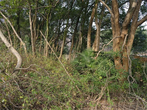 曾经是职工喜欢漫步的小桥淹没在树丛中。