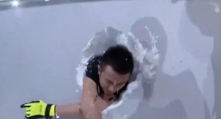 结果水球没有炸开,狠狠地砸在了Mike的脸上。