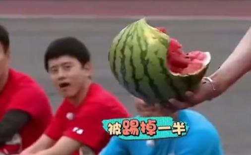 把王嘉尔怀中的西瓜踹成了两半。