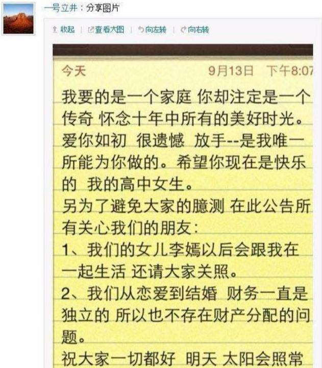 直接在2013年,公布了离婚的消息,王菲只留了一句话:“这一世,夫妻缘尽至此。我还好,你也保重。”