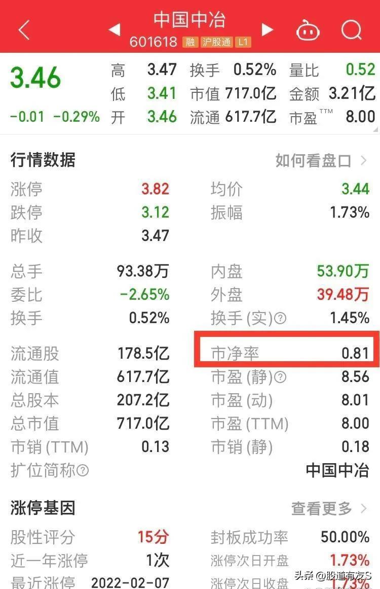 比如市净率是0.81,那意思是用0.81元就可以买到账面价值1元的资产。