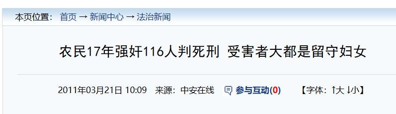 农民17年强奸116人判死刑 受害者大都是留守妇女——中新网