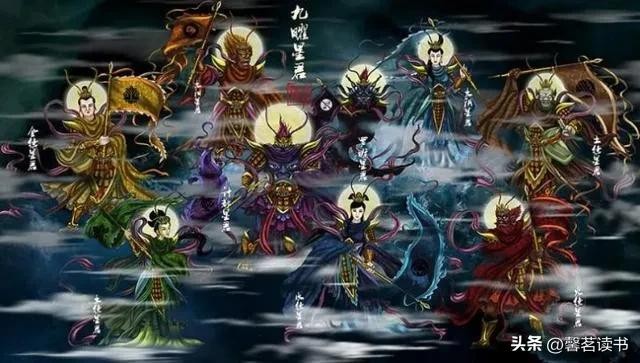 其二,九曜星是北斗七星和辅佐二星的合称,北斗七星包括天枢、天璇、天玑、天权、玉衡、开阳、摇光,辅佐二星是指左辅、右弼;