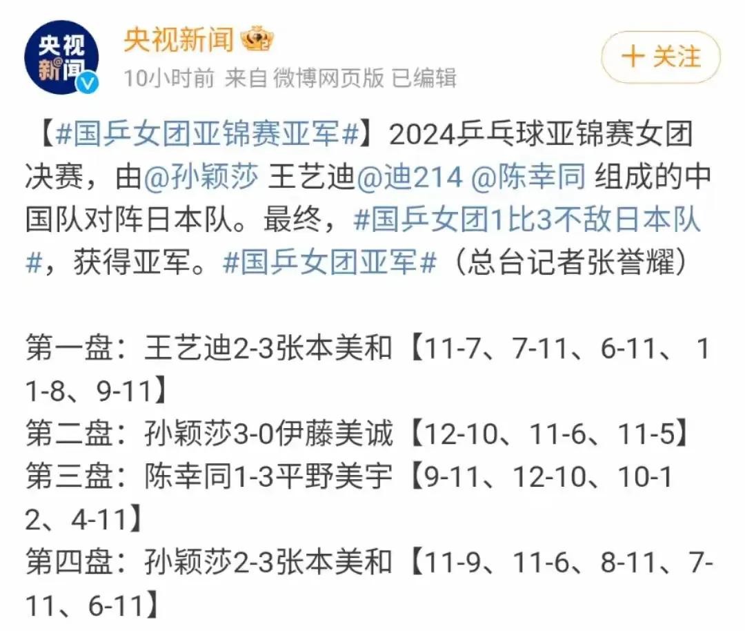 大家好,今天我要和大家聊聊昨天晚上发生的一件让人心痛的事。咱们国家的乒乓球女队在亚锦赛总决赛中输给了日本队,拿到了亚军。这个结果可把大家都吓了一跳,谁也没想到会这样。