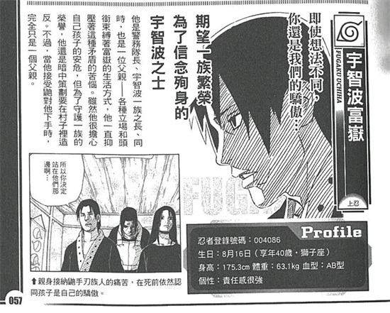 从战国时代就追随斑的宇智波一族成员,实力非常强大,在鼬的回忆中有过登场。