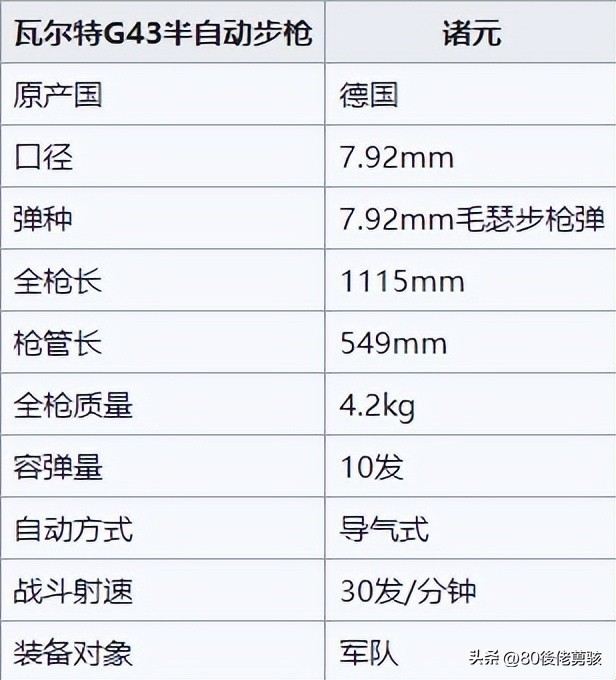 但是在作战性能上,G43步枪和美军的M1加兰德步枪还是有一定的差距的,毕竟当时在第二次世界大战的前中期,德军还是没有把目光完全的放在半自动步枪身上;