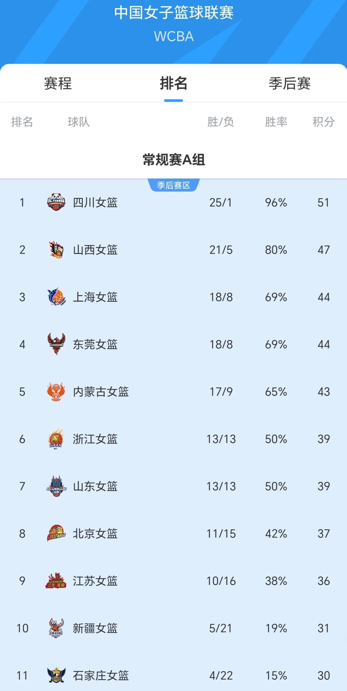 这赛季目前为止北京女篮取得了11胜15负的战绩排在A组第8名,虽然北京女篮只取得了11胜15负的战绩但是本赛季北京女篮战胜过内蒙古女篮、上海女篮以及江苏女篮等老牌强队,所以本赛季北京女篮的实力不容小觑。