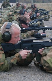 挪威的参试人员正在试射武器,前面的是G36KV3