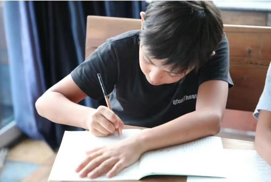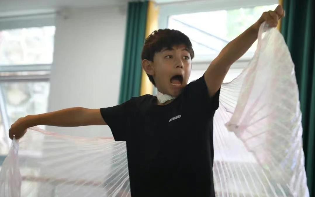 虽然模样变成了少年,但不可否认诺一还只是一个12岁的孩子,在和同学交流时,他脸上露出阳光的笑容,表演时则一丝不苟,格外认真。