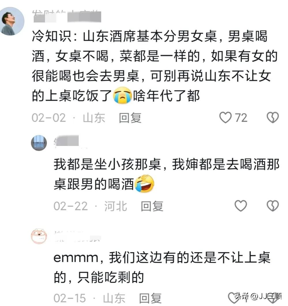 除了以上的几点,山东人大男子主义不让女人上桌吃饭,这事全国网友都知道,这也是一提起山东,大家就会自动带入的标签。