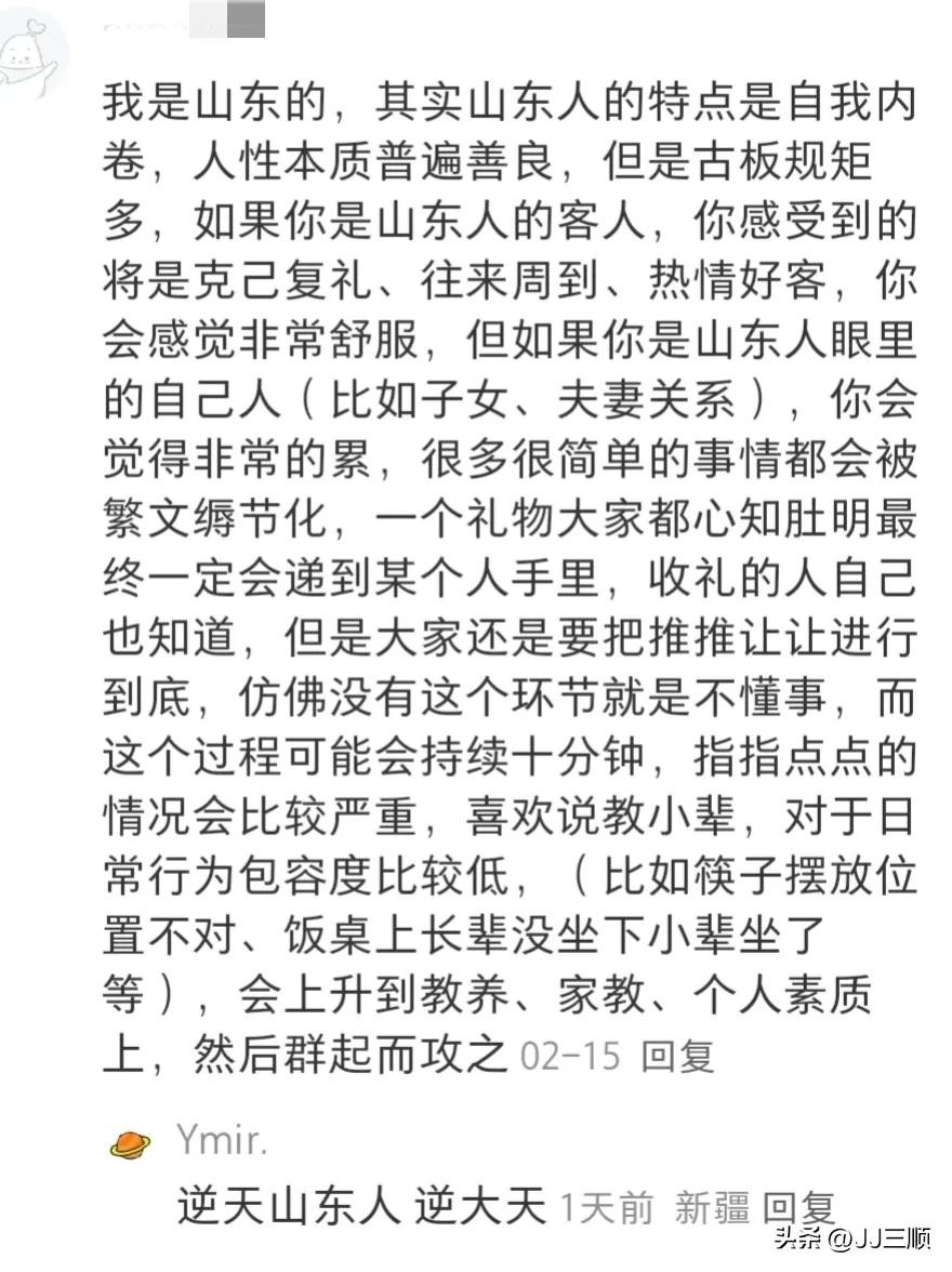 除此之外,网友们还认为,山东人比较喜欢说教别人,教别人做事,思想上还有点迂腐。