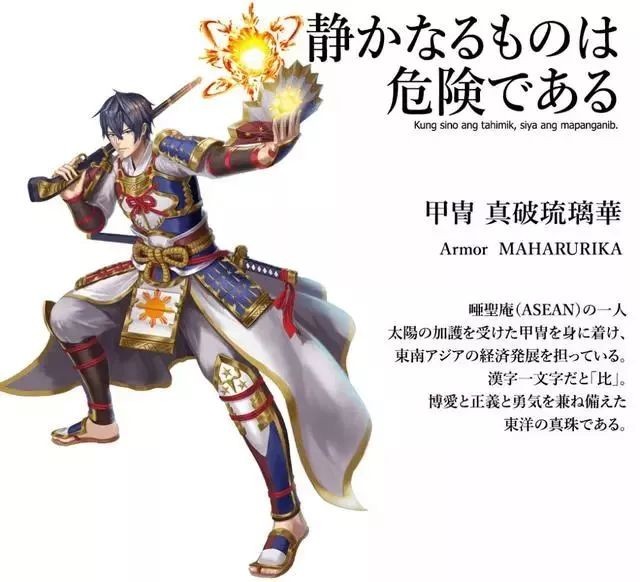 可见画师的功力之高,每个国家的动漫人物形象都设计得很用心,不愧为二次元动漫大国,咱们中国的动漫形象自然很醒目了,无论是人物身上的盔甲、胸部位置挂戴的五星图案,还是盔甲整体的艳红配色等,都起到了红旗的底色搭配效用。