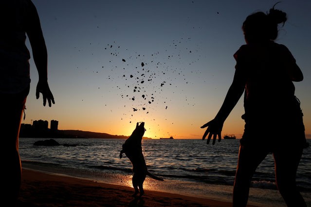 3月22日,在智利比尼亚德尔马,一名女孩在宵禁前与一只狗玩耍。因新冠肺炎疫情蔓延,从19日零时起智利全国进入灾难紧急状态,为期90天;从22日起在全国范围内实施宵禁,以减少人员聚集。新华社/路透