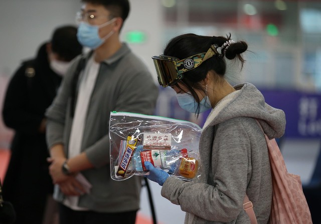 3月25日,北京中国国际展览中心新馆,一位从境外回国的女士拿着服务台发放的礼包,上面写着“欢迎回家”的字样。中青报·中青网记者 陈剑/摄