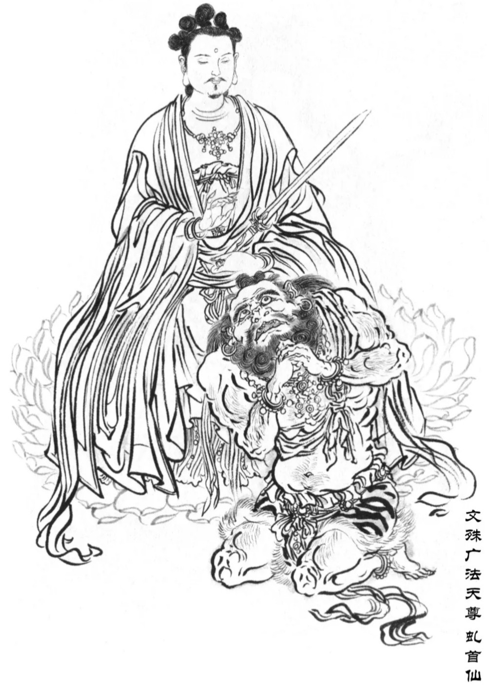 虬首仙,原形是一只青狮,武器为一把宝剑,是太极阵的阵主。阵法作用:进入太极阵后,太极阵四周会化为铜墙铁壁让敌人难以逃脱,上方有兵刃如山岳般压下。战绩:战文殊广法天尊,准提道人帮文殊广法天尊再开泥丸宫,元始天尊也将至宝盘古幡交给文殊广法天尊破阵。虬首仙战文殊广法天尊数回合后,催动阵法攻向文殊广法天尊,被其摇动盘古幡定住,后文殊广法天尊现出法身以捆妖绳将虬首仙捆住,带回了芦蓬。